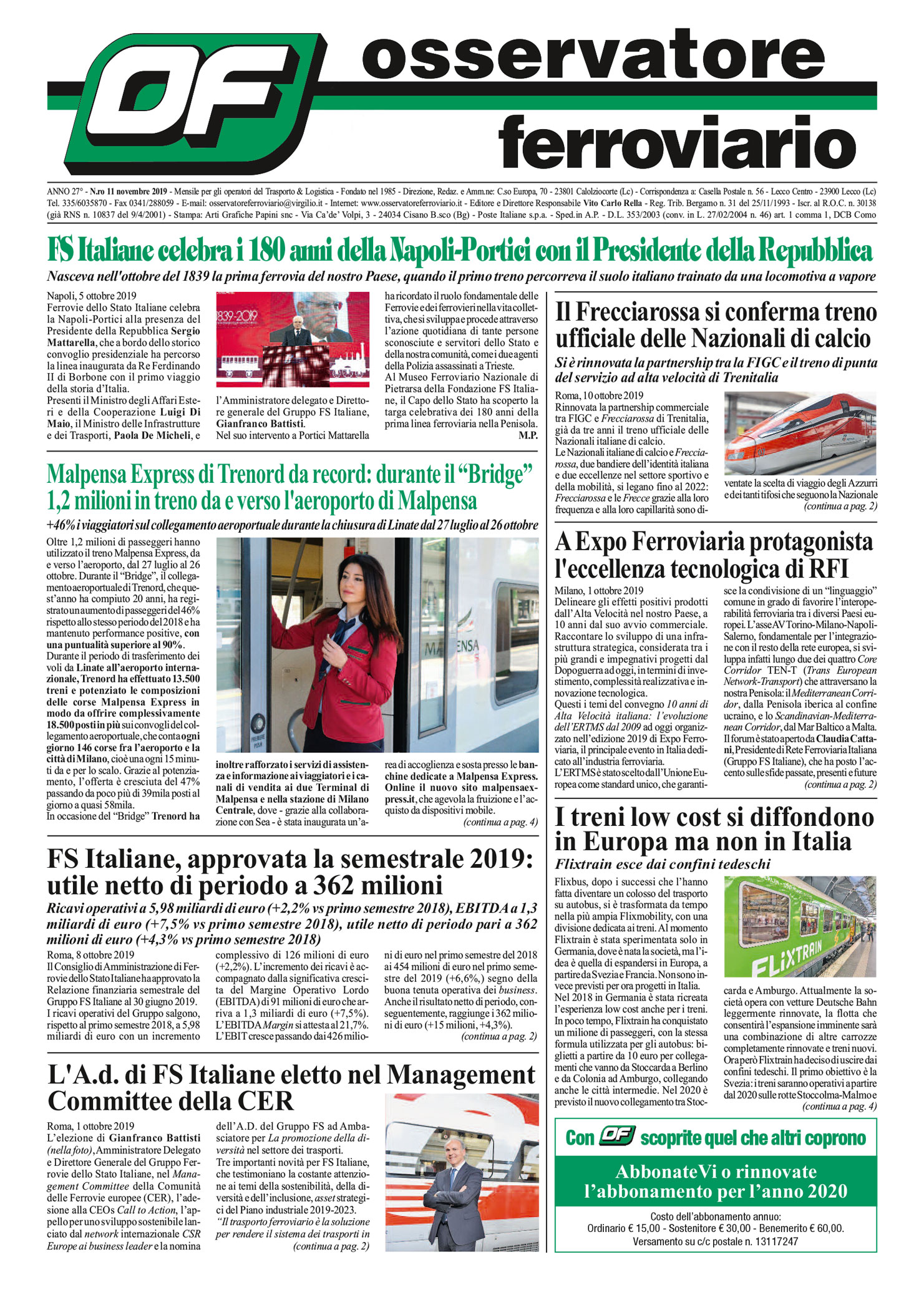 All'A.d. di FS Italiane Gianfranco